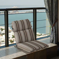 आउटडोर patio फर्नीचर उच्च वापस कुर्सी तकिया काले और तन धारीदार यात्रा कुर्सी सीट मंजिल तकिया